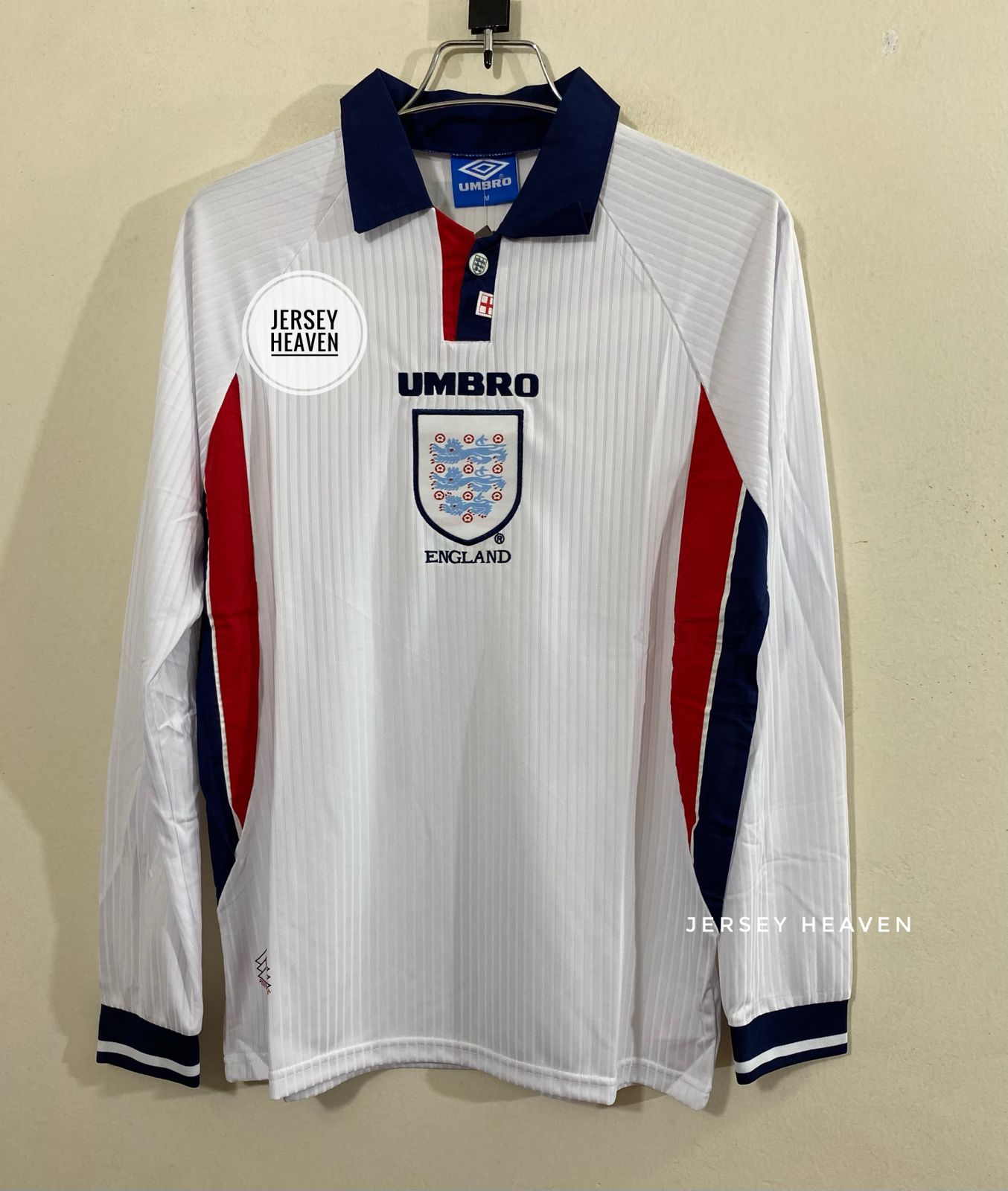 Bring back the vintage Three Lions pride with the England 1998 Home Kit Full Sleeve (Retro Edition) — premium design and iconic detailing from Jersey Heaven Bangladesh.